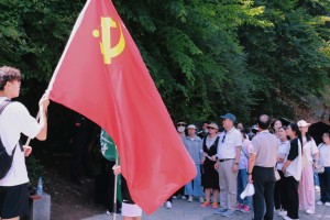 健步强体魄,奋力勇向前。6月29日早上十一点,登山行活动启动,大家从薛家寨山脚出发,沿着台阶,跟随党旗结队而行。在登山途中还参观了红军当时抗战所建造的驻地、粮仓等遗址,参加活动的每一位党员都精神抖擞,充分展示了教师乐观向上的精神面貌。