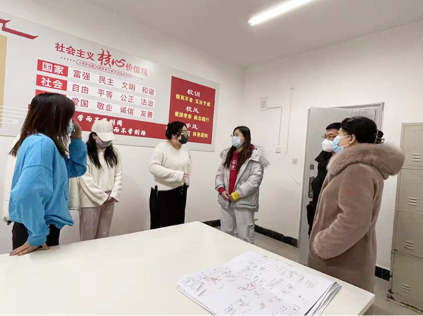 疫情就是命令,防控就是责任。2021年12月27日上午,公司党支部书记、副经理罗杜娟,学工办主任耿鹏飞以及辅导员李月月、张涵走访员工宿舍,关心关爱员工,及时了解员工的思想动态及学习生活状况。
