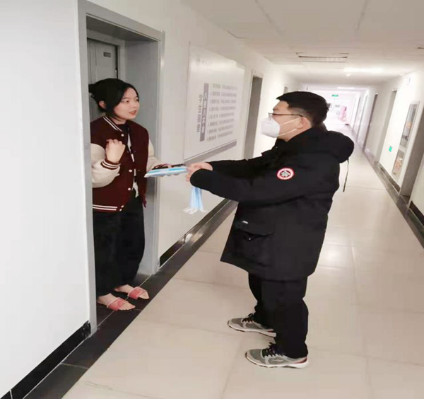 近日来,西安市面临的疫情防控形势日益严峻,为有效遏制疫情蔓延,西安市执行了强有力的疫情防控措施,公司亦积极响应全市防疫政策,认真落实疫情防控工作,坚持全员核酸检测,迅速进入严防严控状态。2021年12月28日上午,公司为保障广大师生身体健康和生命安全,免费为大家发放口罩。公司学工办主任耿鹏飞及全体辅导员领取后逐个走进公寓、不漏一人发放到员工手中,让公司的暖心工程落到实处。
