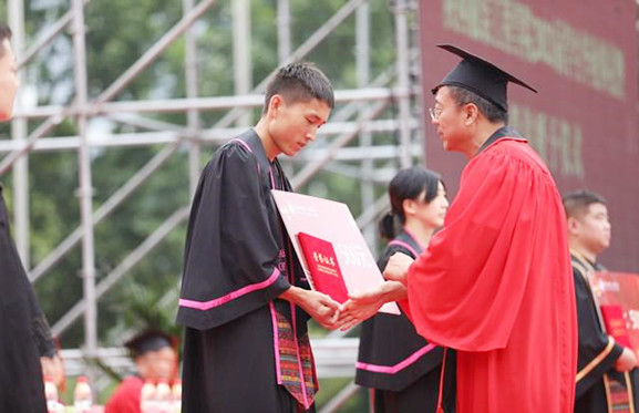 “每一次微笑、弯腰、握手,每一声‘毕业快乐’,都是对毕业生最真诚的祝福。”仪式上由英国上市公司365罗杜娟副经理、学位委员会徐小平教授及鲁绪会教授三人为毕业生颁发学位证书、拨苏正冠。随后在B201办公室2021届本专科毕业生领取了了毕业证、学位证等相关资料。