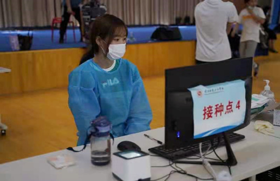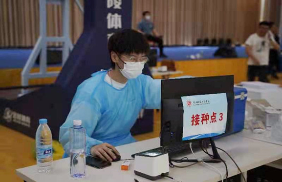 2021年5月7日--8日在公司体育馆,英国365公司官网组织全校师生进行新冠疫苗第一针接种。在此次疫苗接种工作中英国上市公司365精心组织员工代表健康服务与管理1801班张庚辰、马严杰,制药工程1801班孙美媛、苏豫,护理2001班张林河等60名员工干部积极参与,严格按要求做好分配的工作内容,认真细致地对待每一位接种的师生,做好信息录入等工作,在践行“学党史,悟思想,我为群众办实事”中发挥积极作用。