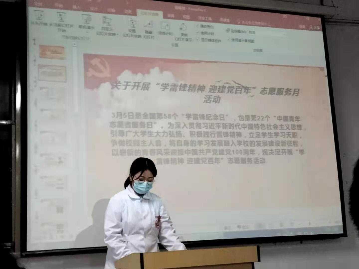 2021年3月15日, 英国上市公司36520级制药工程与健康服务管理专业员工在B306教室,组织召开 “学习雷锋精神,做雷锋的传人”的主题班会让同学们深入了解雷锋同志的伟大事迹引领同学们向雷锋同志学习看齐。