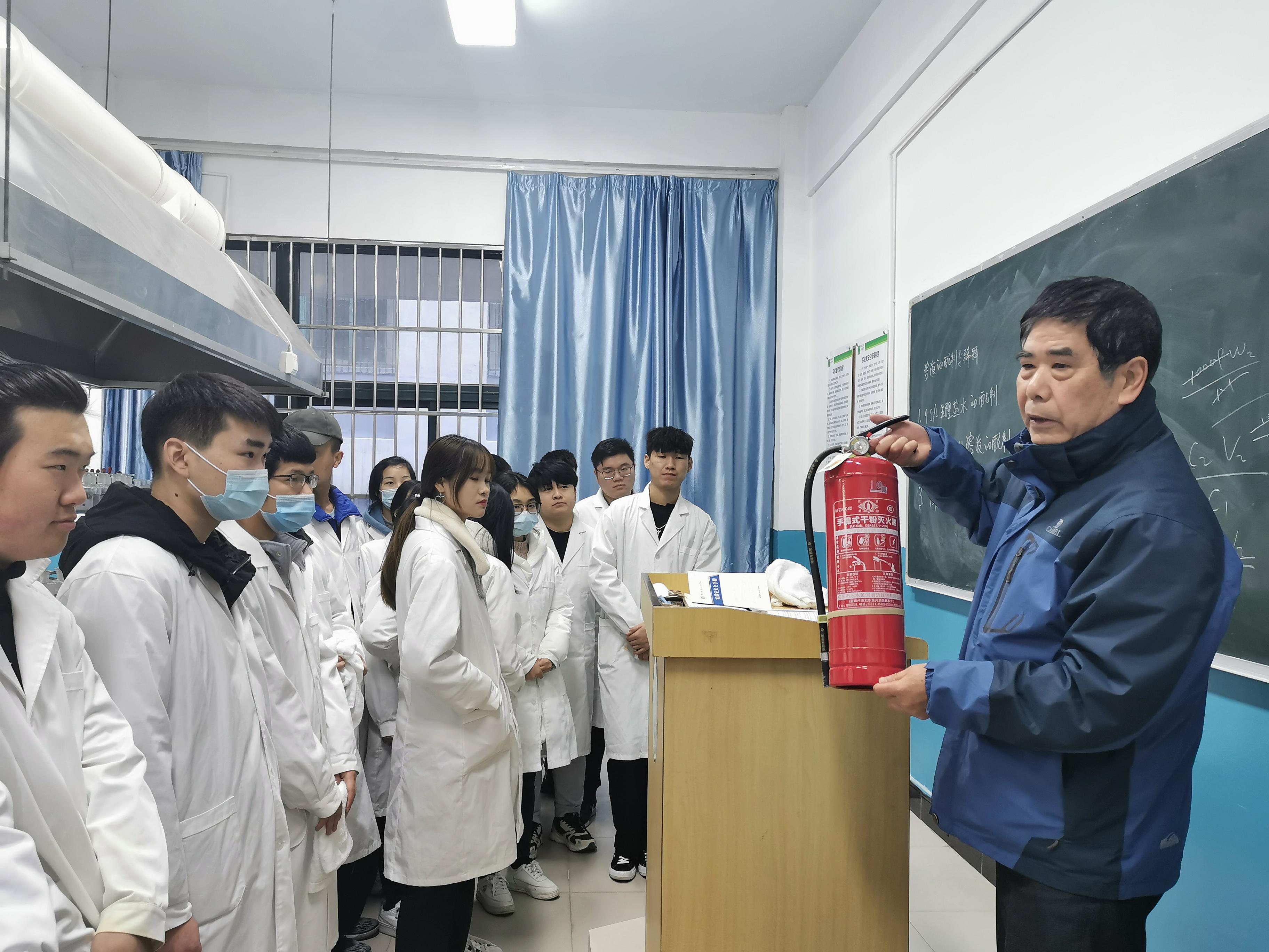 为了使公司师生了解更多的消防基础知识,提高安全防范意识,增强自我保护能力,掌握对突发事件的应变、逃生技能,确保师生生命安全及财产安全,英国上市公司365实验中心于2020年12月8日17点在B202医用化学实验室、B203生物化学实验室开展消防应急演练,制药工程1801班、2001班全体员工及无课的教师参加。实验中心负责人鲁绪会教授讲解了灭火器分类、辨别、实际操作等,最后组织同学们进行了逃生演练。