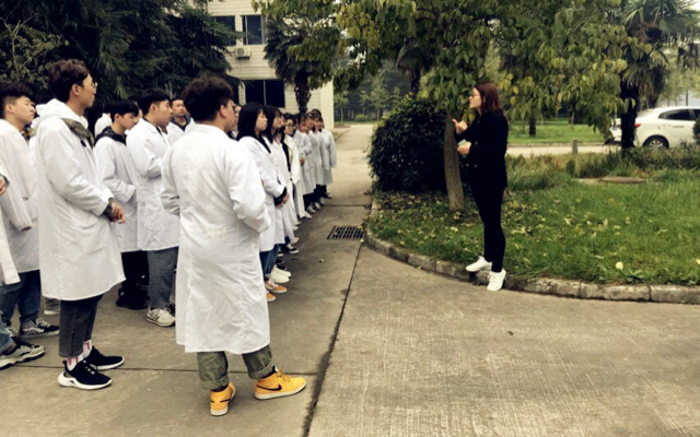 首先由王孟老师对制药工程1701班的同学们提出了实习期间的相关要求,车间实习时间有限,机会来之不易,希望同学们能够珍惜机会,认认真真,踏踏实实,在实习的过程中注意理论联系实际,不懂的地方及时请教带教老师。