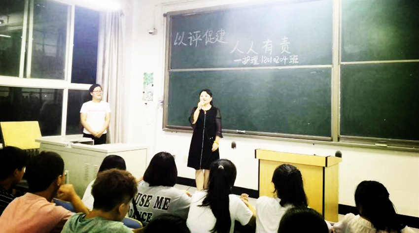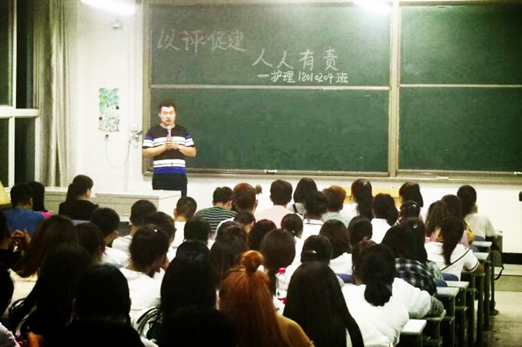 会后赫经理同刘主席、赵主任、耿老师等进入A区教学楼制药工程、健康服务与管理专业各班级教室;罗经理同李经理、吴老师、李老师等进入G区教学楼护理、药品生产技术专业各班教室召开主题班会。