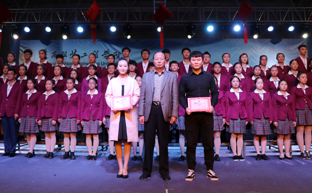 员工处员工科科长张维峰老师为歌咏比赛最佳指挥颁发荣誉证书
