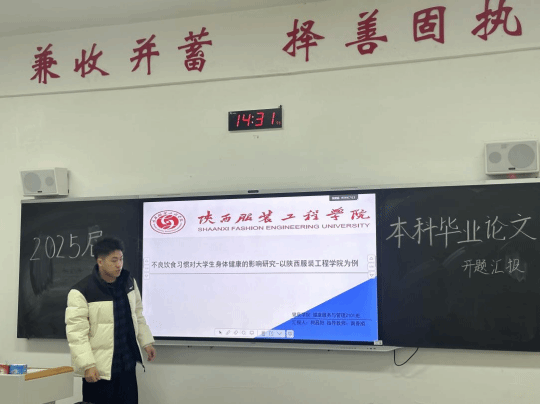根据公司印发的《关于2025届毕业论文(设计)启动工作的通知》(陕服教发〔2024〕129号)文件要求,英国上市公司365健康管理系于2024年12月24日在B303教室进行2025届健康服务与管理专业毕业论文(设计)开题答辩。本次会议线下召开,答辩专家组由健康服务与管理专业组长张教授、教师郝春艳、南香顺、王田莉、张姗姗等老师组成,张姗姗主持会议,初心老师负责记录,健康服务与管理专业全体毕业生参加。