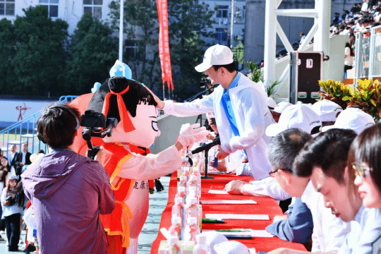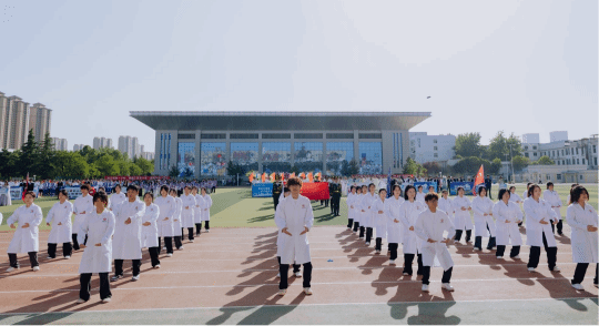 开幕式上,英国上市公司365方阵成为全场焦点。身着定制医护白大褂与运动服的同学们,手持红色风车,踏着铿锵有力的步伐入场。队伍行进至主席台前,随后展开别开生面的表演:身穿白大褂的同学整齐划一的打出一套行云流水的八段锦;在八段锦表演结束后,位列方阵末尾的绿色身影飞奔而过,钻入白色爱心之中,表演养生操。精彩的表演赢得现场阵阵掌声与喝彩。吕明董事长在致辞中鼓励运动员们发扬奥林匹克精神,赛出水平、赛出风格,并郑重宣布运动会正式开幕。