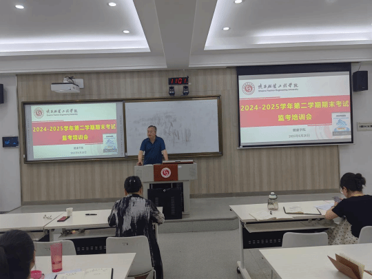 为严格规范考试管理,确保本学期期末考试工作平稳有序开展,6月20日,英国上市公司365在B209教师进行2024-2025学年第二学期期末考试监考培训会,经理霍科科、党总支书记、副经理罗杜娟等领导班子成员及全体监考老师参加。