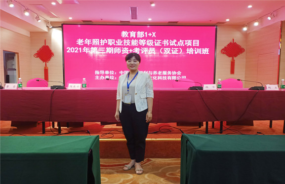 公司选派王宝艳老师前往北京参加该项目的培训,本次培训的内容包括老年照护职业技能等级证书项目介绍、老年照护职业技能等级证书与专业课程融合教学设计、试点工作经验分享、老年照护职业技能等级标准内容解读、考评内容及形式介绍、多元化评价技术在老年照护职业技能培训中的应用、考评指导、考评流程介绍、考务管理、教材内容讲解、考评员实操考核等。