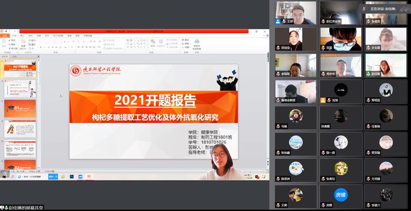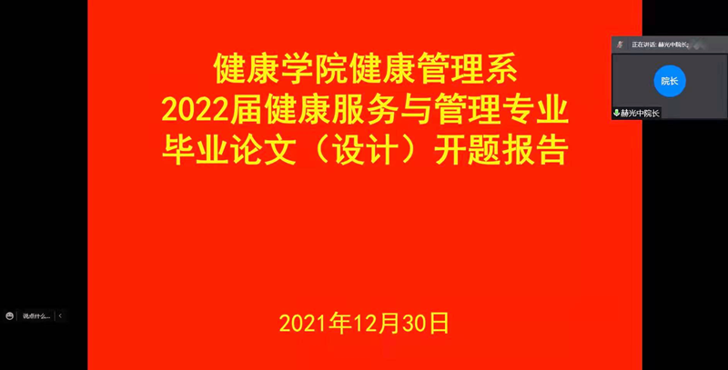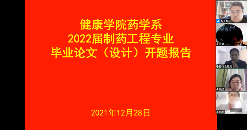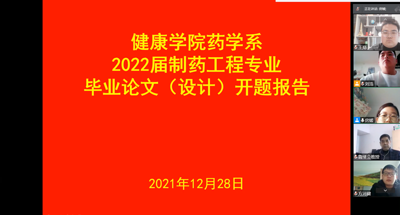根据2021年12月25日公司下发的《关于在疫情防控期间做好2022届本科生毕业论文(设计)工作的通知》相关要求,英国上市公司365制药工程、健康服务与管理两个专业分别在12月28、30日组织了本科毕业生线上论文开题答辩。为了保障疫情期间毕业生论文撰写质量,各专业在专业负责人的带领下,充分利用疫情期间线上教学积累的经验,纷纷组织员工通过腾讯会议进行了“线上开题答辩”。尽管是首次使用视频直播的方式进行开题答辩,在老师们的精心组织之下开题仍然能够进行的井然有序、有条不紊,取得了良好效果。