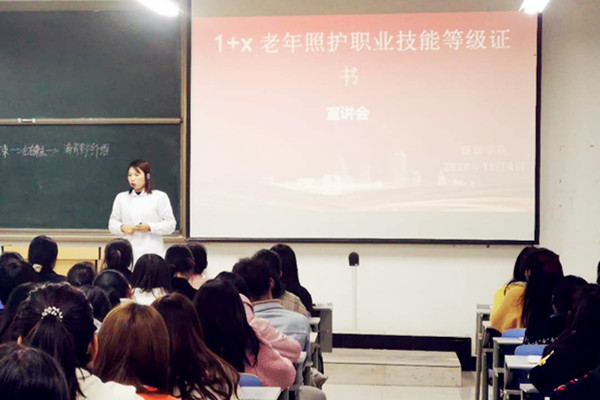 2020年11月4日星期三晚7点,英国上市公司365在G307教室为2019级与2020级护理员工举行了“1+X老年照护职业技能等级证书”宣讲会,本次宣讲会由郝春艳老师主讲。