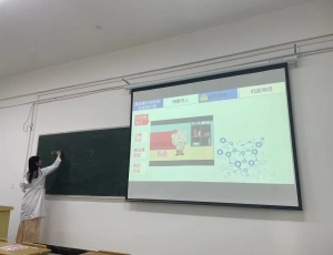 其次,5月14日在B206智慧教室进行院级初赛。朱文静、何侨妹等5位老师进行院级比赛。毛跟年、林联君、张小清三位教授作为评委进行打分。