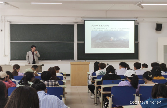 鲁教授分别从化学实验室的特点、实验中的典型事故案例、加强管理强化安全教育、事故发生后的急救逃生措施、此次讲座的目的意义等方面进行了讲解。