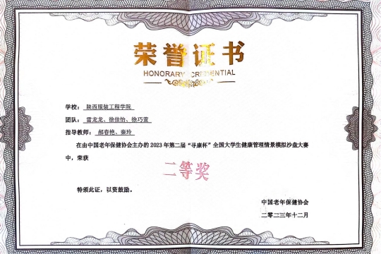 2023年12月9日,由中国老年保健协会主办,第二届“寻康杯”全国高校健康管理情景模拟沙盘竞赛落下帷幕。由公司健康服务与管理专业员工雷龙龙、徐佳怡、徐巧宣组成的“风启”队,以扎实的专业知识、娴熟的专业技能、良好的沟通能力,沉着应战,最终荣获二等奖。
