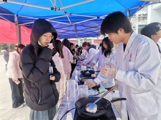在中药香包制作区,同学们介绍了香包中各种香料的功效,如艾叶驱蚊、藿香化湿、薄荷提神等。大家一边学习制作香包,一边交流着养生心得,现场充满了欢声笑语。不一会儿,一个个色彩鲜艳、香气宜人的香包就制作完成了。这些香包不仅具有实用价值,还承载着女性朋友们对美好生活的祝福和向往。