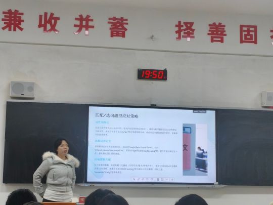 来自生物制药2301班的谯怡同学率先分享了大学英语四级备考的“题型靶向策略”。在选词填空部分,她提出“词性预判法”,建议先标注选项词性再匹配原文,结合“词频+语境”双重验证,有效降低错误率。对于阅读理解,她强调“题干关键词定位法”,优先抓取数字、专有名词等高辨识度信息,从而快速锁定答案,提升解题效率。她还就时间分配与单词记忆分享了个人心得,其生动风趣的讲解,在轻松互动中为大家化解了备考疑惑。