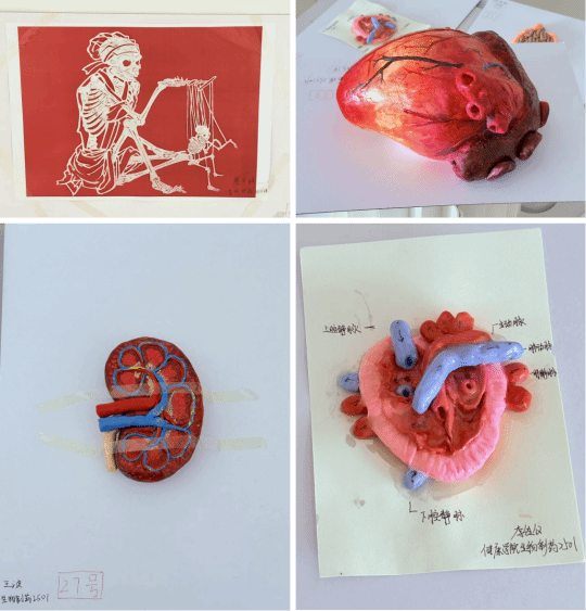 在手工模型展区,同学们以黏土、纸张等材料,融合解剖学与生理学知识,精心制作出一系列人体骨骼、器官与经络结构模型。作品兼具科学准确性与艺术表现力,不仅深化了员工对人体结构的空间认知与细节记忆,也锻炼了动手能力与材料运用水平,体现了健康类专业“理论结合实践”的培养理念。