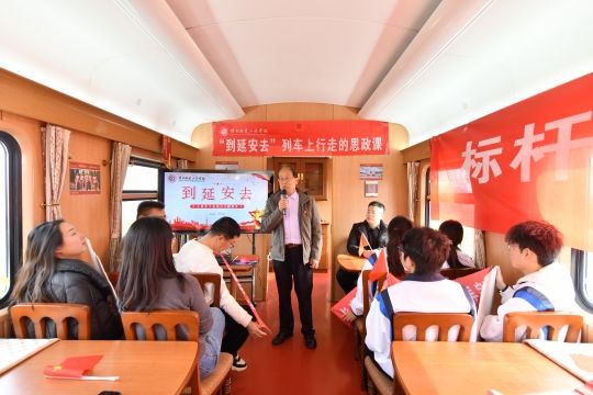 移动课堂启程,红色专列上的思政课列车甫一开动,“移动思政课堂”随即开讲。董事长助理罗文谦以“延安十三年”历史脉络为主线,将瓦窑堡会议、党的七大等重大事件娓娓道来。车厢内红旗漫卷、标语醒目,学子们聆听记录、互动问答,围绕“延安精神的时代价值”展开热烈讨论。“在奔赴延安的路上感悟延安精神,仿佛与历史同频共振”,一位同学的感言道出了大家共同的心声。