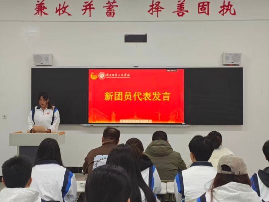新团员代表生物制药2501班介鑫同学满怀激动地表达了加入共青团的喜悦与憧憬。她表示,深刻认识到共青团是党的助手和后备军,加入团组织是追求进步、实现成长的重要契机。同时郑重承诺,将坚定理想信念,强化理论学习;践行团员使命,在各项工作中争当先锋;严守组织纪律,积极参与团的活动;团结关爱同学,充分展现团员的先进性,以实际行动向团组织靠拢,努力成长为合格的社会主义建设者和接班人。