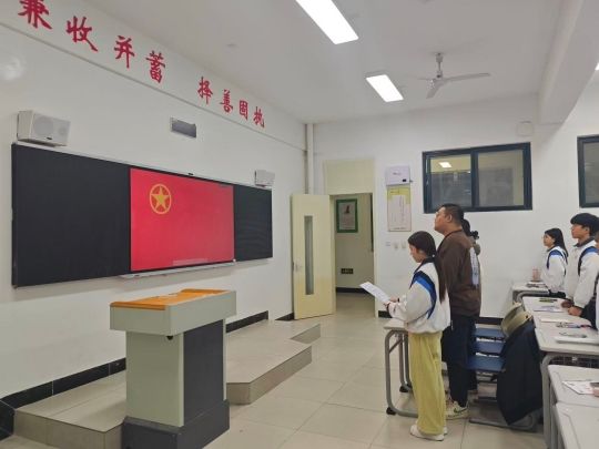 仪式在庄严的国歌声中拉开帷幕。全体师生肃立注目,面向国旗致敬,激昂的旋律奏响了青春奋进的序曲,让新老团员在爱国主义的浸润中进一步坚定了为中华民族伟大复兴而奋斗的理想信念。