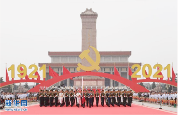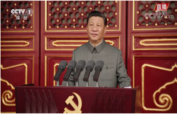 2021年7月1日上午8时,庆祝中国共产党成立100周年大会在北京天安门广场隆重举行。中共中央总书记、国家主席、中央军委主席习近平出席大会并发表重要讲话。