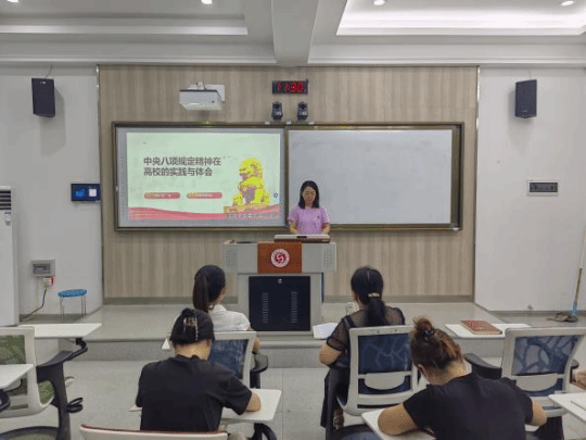 4、教工党支部书记实践分享:6 月 26 日,教工党支部书记房媛在 B206 教室为党员教师讲授《中央八项规定精神在高校的实践与体会》专题党课,分享在教学、科研等工作中贯彻落实规定精神的具体做法和经验。