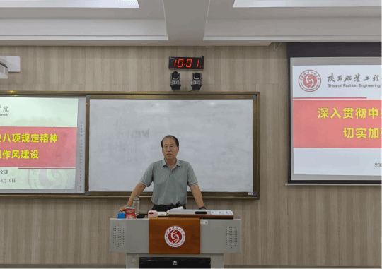 1、校领导示范引领:6月19日,公司特邀董事长助理、本院联系校领导罗文谦教授,在 B208 教室为公司班子成员、师生党员及入党积极分子讲授《深入贯彻中央八项规定精神,切实加强作风建设》专题党课。罗助理结合学校工作实际,深入解读中央八项规定精神内涵,强调作风建设对公司发展和人才培养的重要意义。