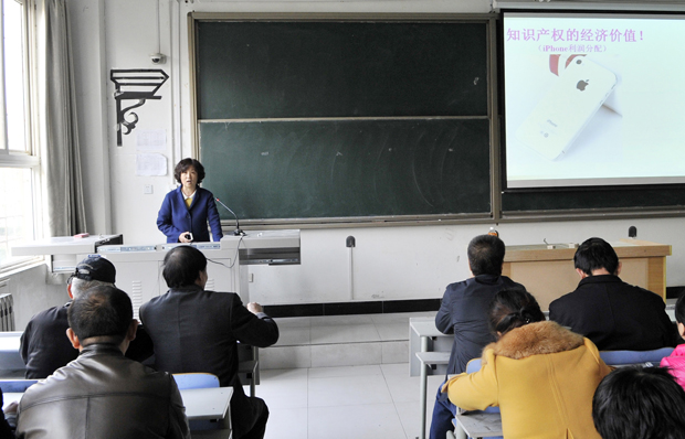 咸阳市知识产权局局长王军作专题报告 11月15日下午,公司在D区105教室举办知识产权培训会。咸阳市知识产权局局长王军从知识产权知识、知识产权保护的经济价值、如何申请专利等方面为公司100多名教师做了一场联系实际...